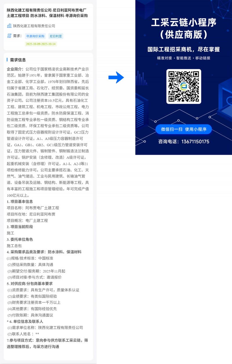 陕西化建工程有限责任公司-尼日利亚阿布贾电厂土建工程项目-防水涂料、保温材料-寻源询价采购