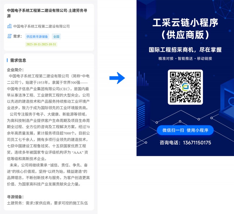 中国电子系统工程第二建设有限公司-土建劳务寻源