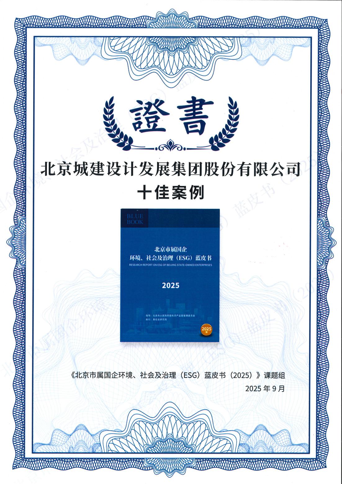 近日,《北京市属国企环境、社会及治理(ESG)蓝皮书(2025)》正式发布,城建设计申报的《以装配式内装践行政策导向,赋能城市绿色发展新路径》案例获评“十佳案例”,这是公司在ESG领域创新实践的实力体现。