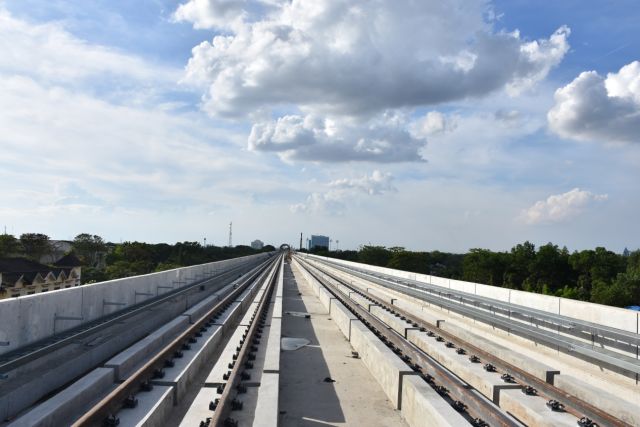 印尼巨港轻轨项目单线长约45.5公里,均为无枕式无砟道床,包括渡线道岔13组,交叉渡线道岔2组,铝热焊接头4067个,全线最小曲线半径80米。该项目是印尼第18届亚运会的配套工程,也是印尼第一条轻轨线路。