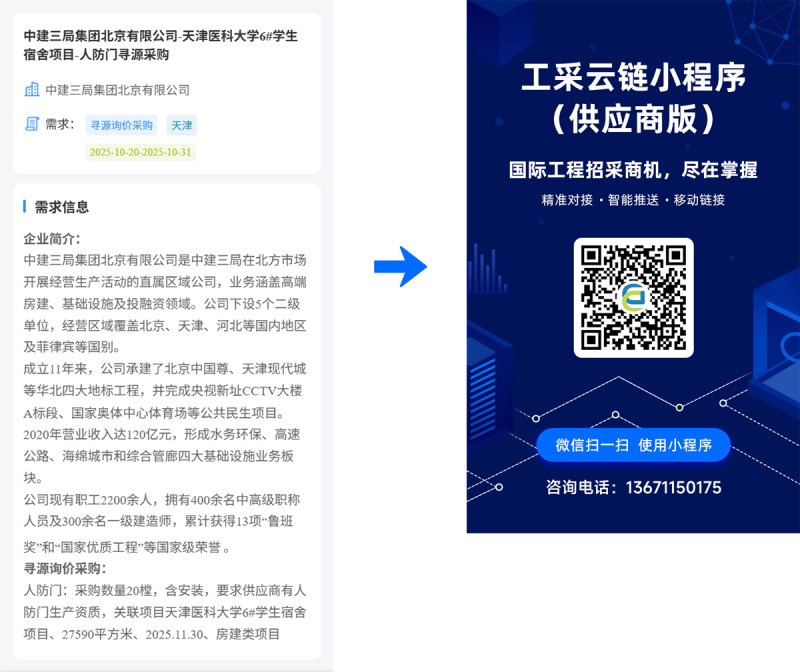 核心提示:中建三局集团北京有限公司-天津医科大学6#学生宿舍项目-人防门寻源采购