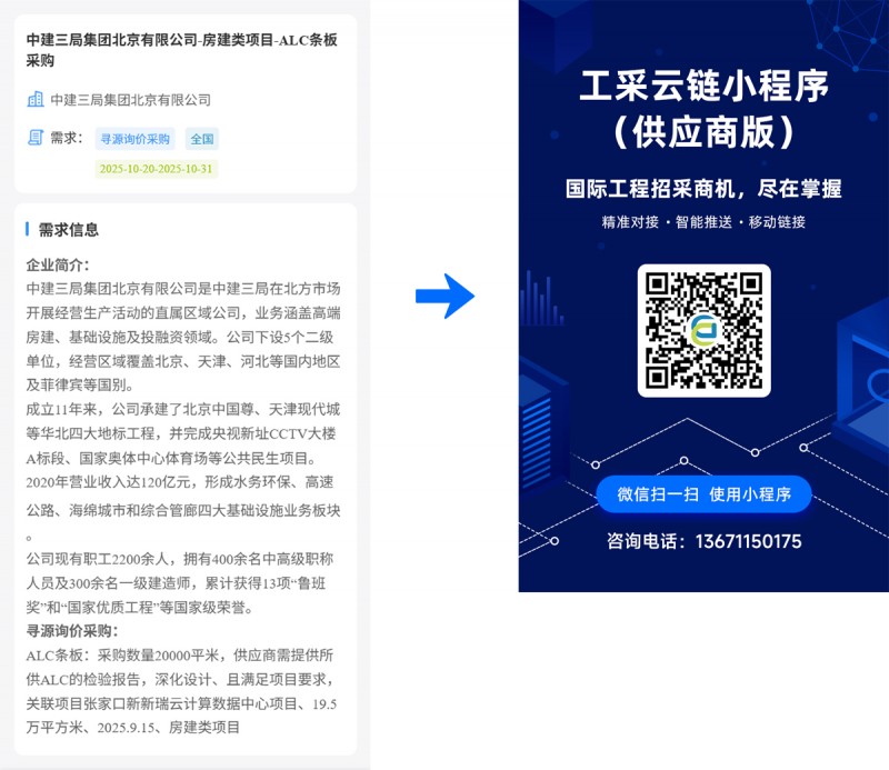 核心提示:中建三局集团北京有限公司-房建类项目-ALC条板采购