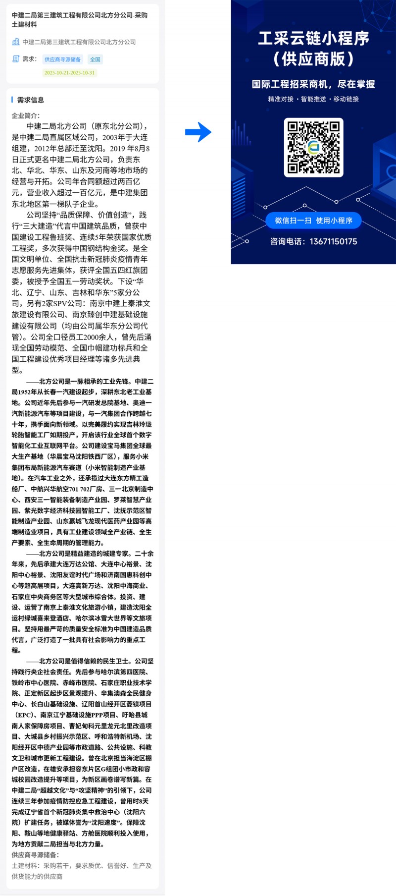 核心提示:中建二局第三建筑工程有限公司北方分公司-采购土建材料