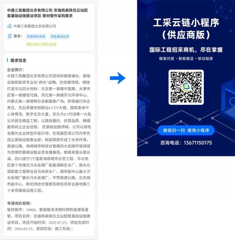 核心提示:中建三局集团北京有限公司-京雄商高铁任丘站配套基础设施建设项目-管材管件采购需求