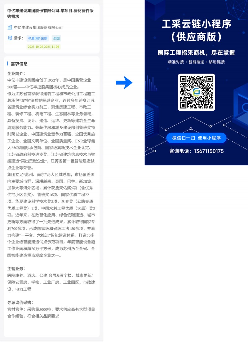 核心提示:中亿丰建设集团股份有限公司-某项目-管材管件采购需求