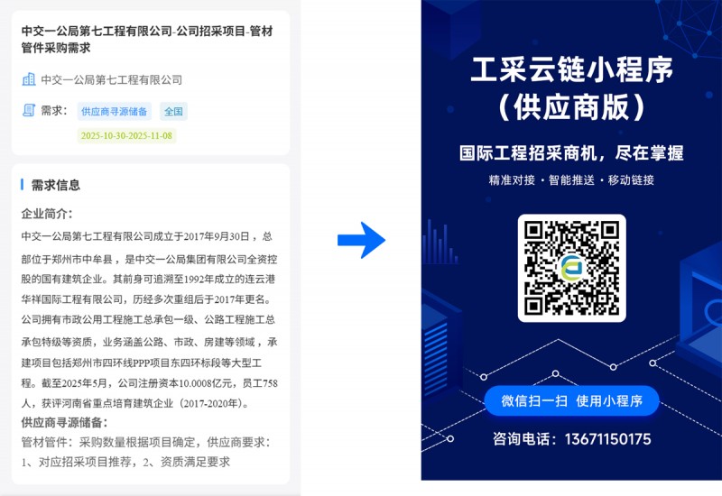 核心提示:中交一公局第七工程有限公司-公司招采项目-管材管件采购需求