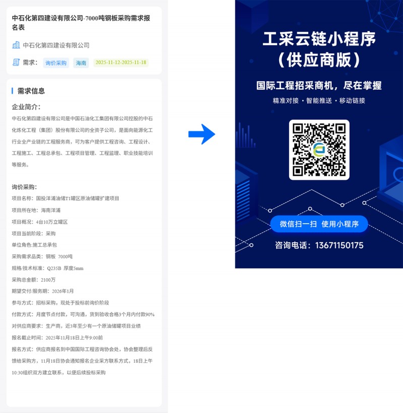 中石化第四建设有限公司-7000吨钢板采购需求报名表