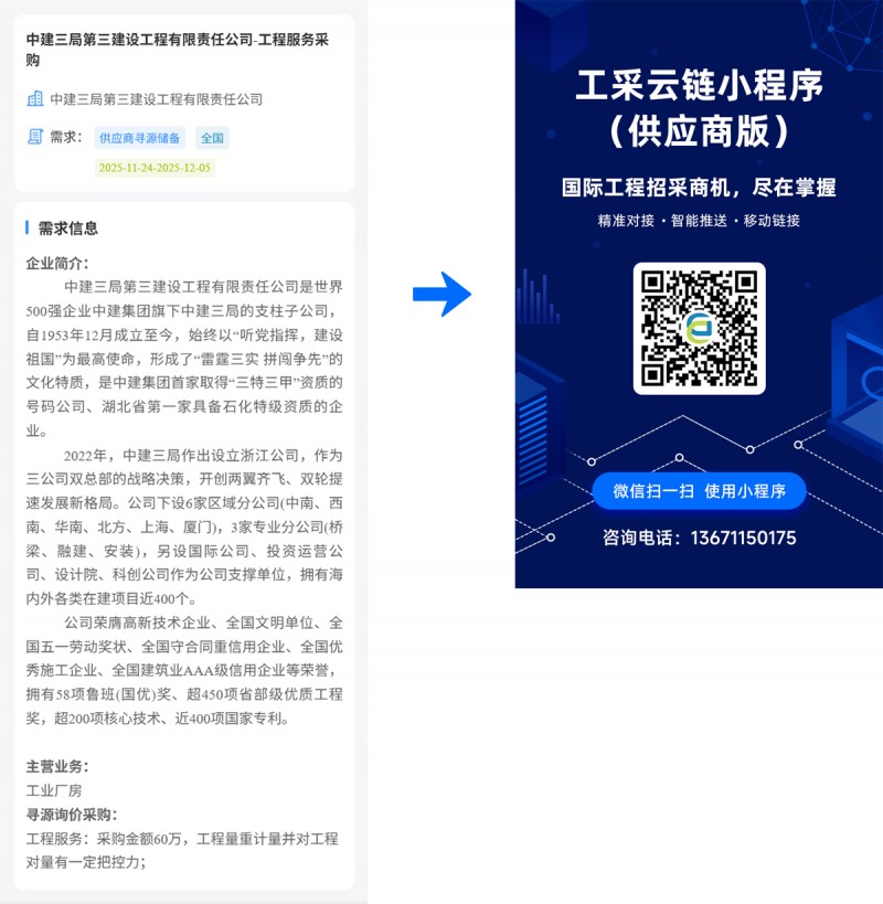 核心提示:中建三局第三建设工程有限责任公司-工程服务采购