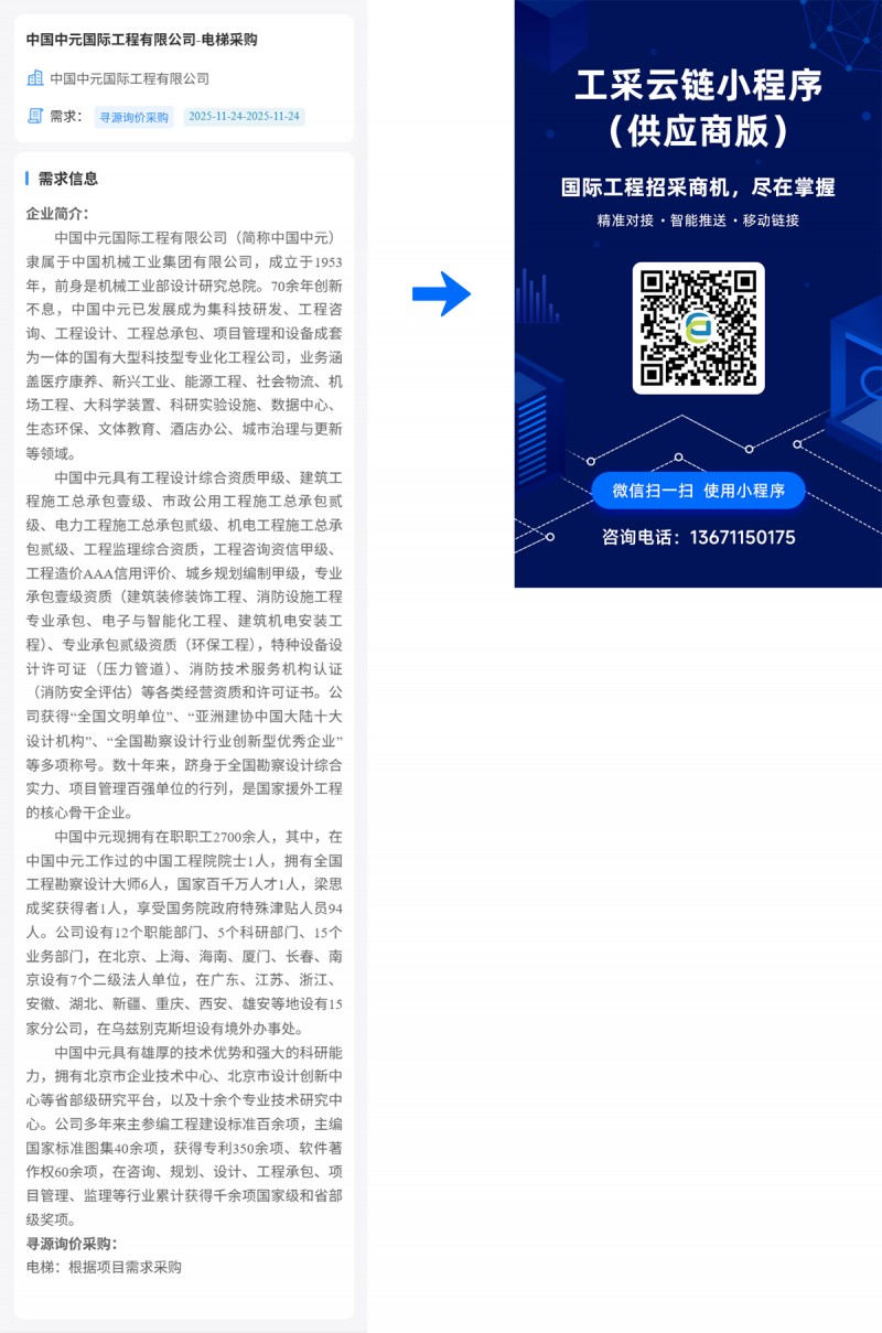 核心提示:中国中元国际工程有限公司-电梯采购