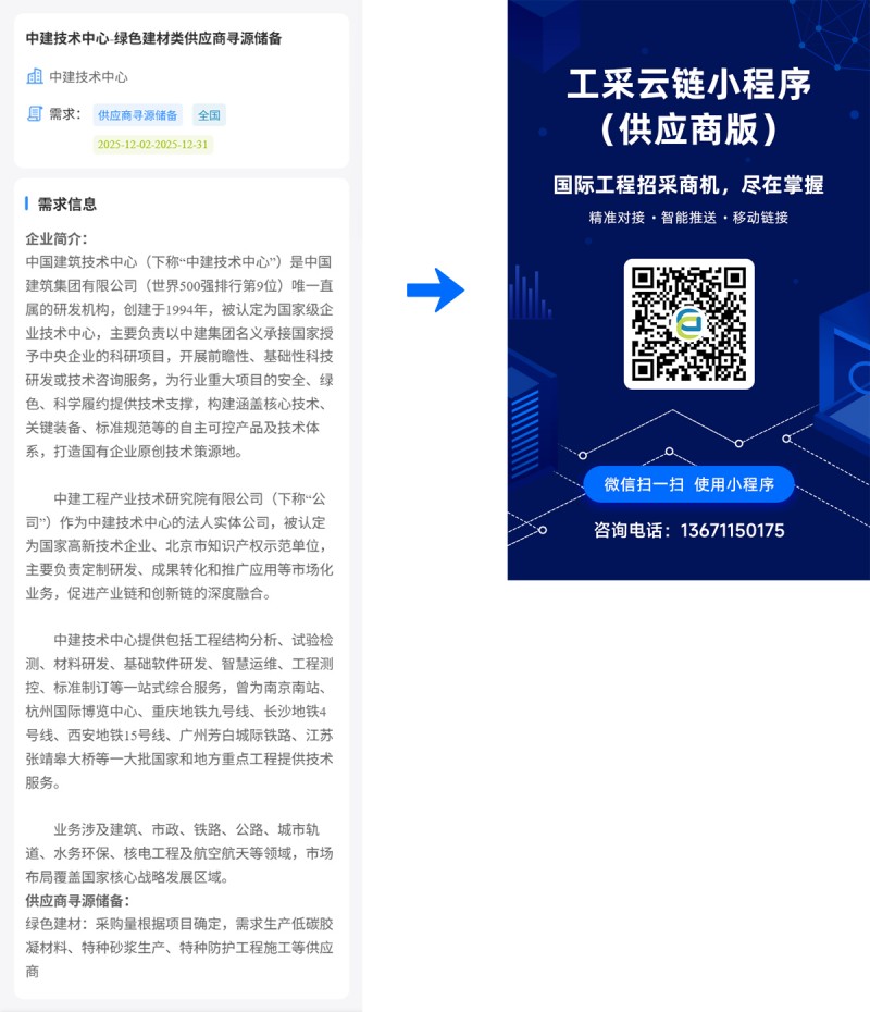 核心提示:中建技术中心-绿色建材类供应商寻源储备