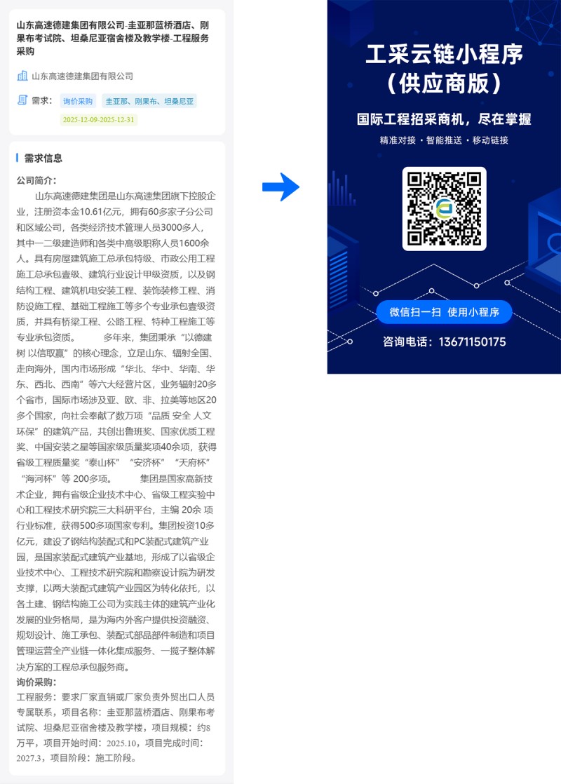 山东高速德建集团有限公司-圭亚那蓝桥酒店、刚果布考试院、坦桑尼亚宿舍楼及教学楼-工程服务采购