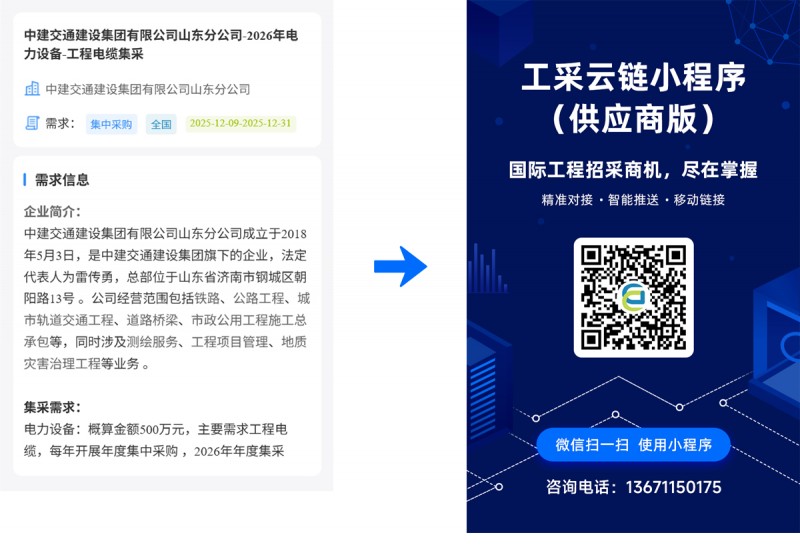 核心提示:中建交通建设集团有限公司山东分公司-2026年电力设备-工程电缆集采