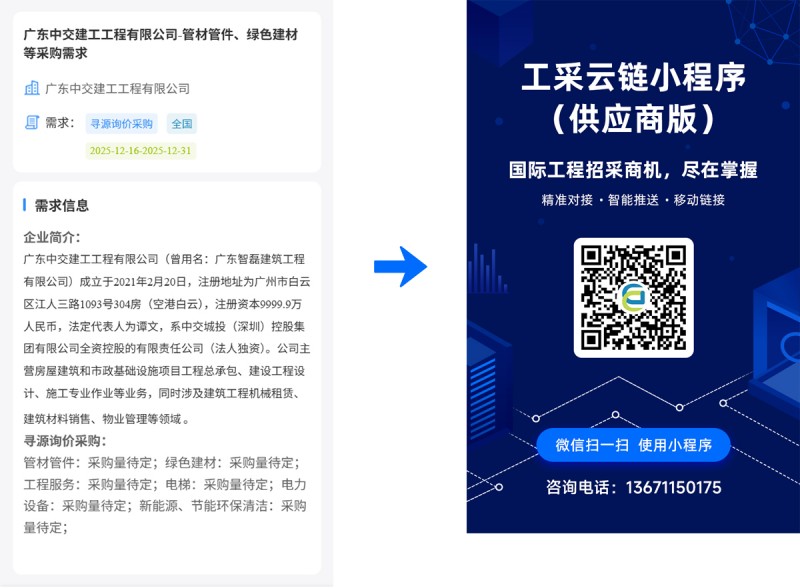 核心提示:广东中交建工工程有限公司-管材管件、绿色建材等采购需求