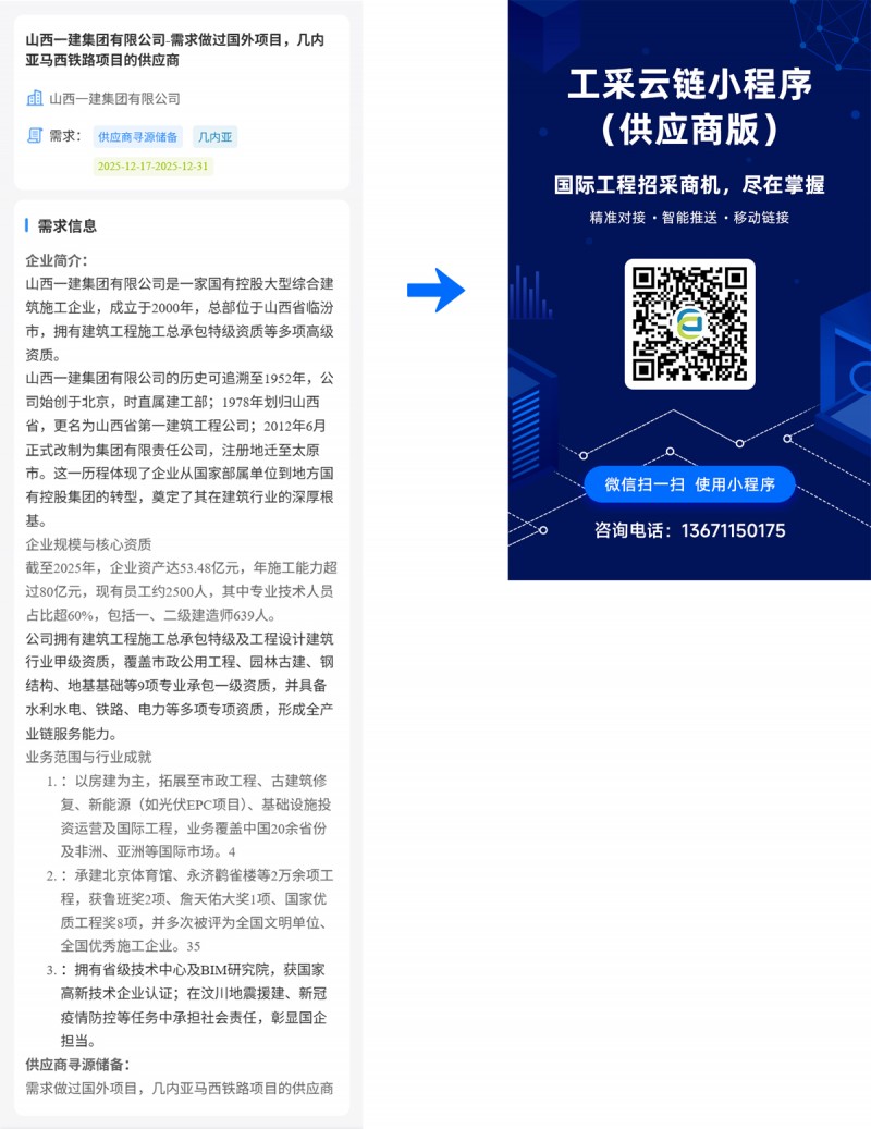 核心提示:山西一建集团有限公司-需求做过国外项目,几内亚马西铁路项目的供应商