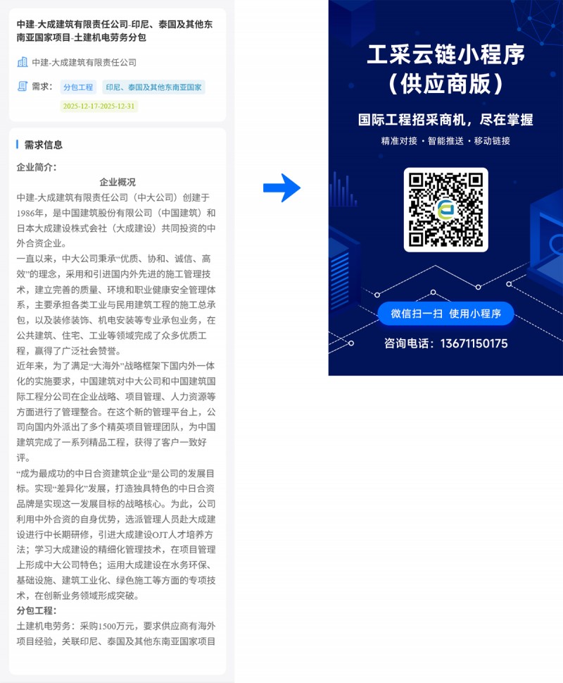 核心提示:中建-大成建筑有限责任公司-印尼、泰国及其他东南亚国家项目-土建机电劳务分包