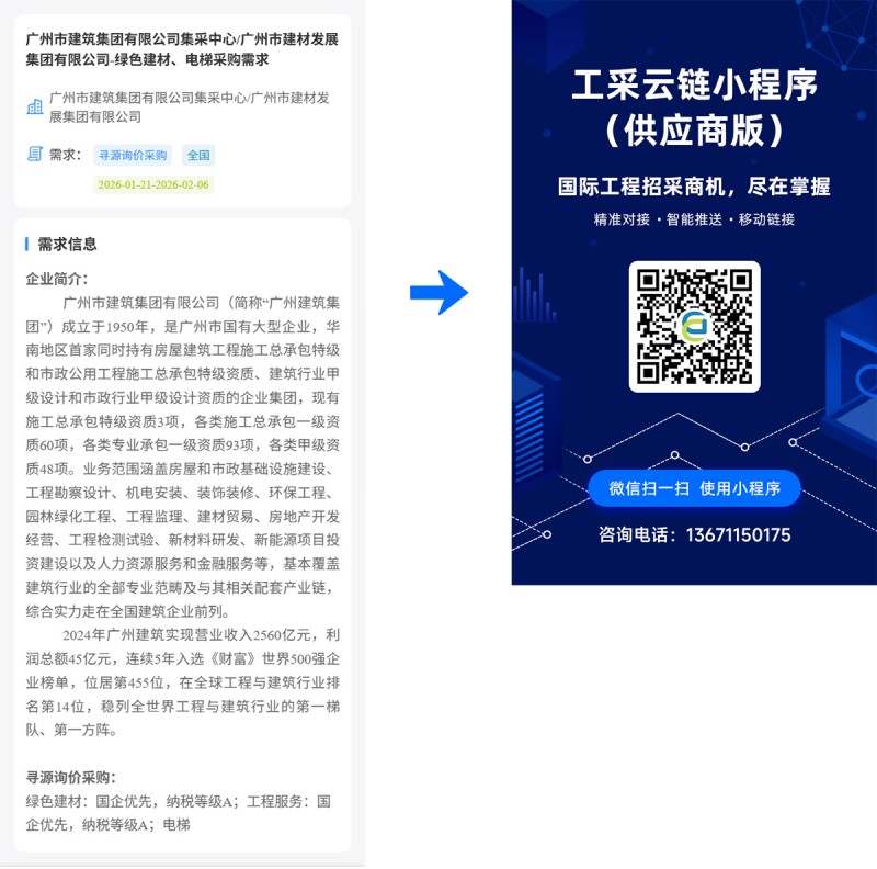 核心提示:广州市建筑集团有限公司集采中心/广州市建材发展集团有限公司-绿色建材、电梯采购需求