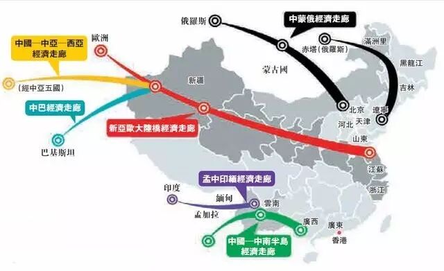 中巴、孟中印缅、中蒙俄、新亚欧大陆桥、