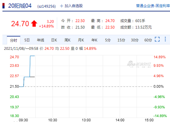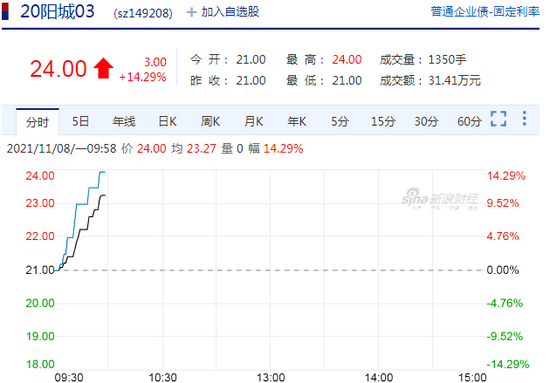 核心提示:2021年11月8日上午,部分地产债反弹,“20阳城04”“20阳城03”涨超14%,“20奥园01”涨超11%。